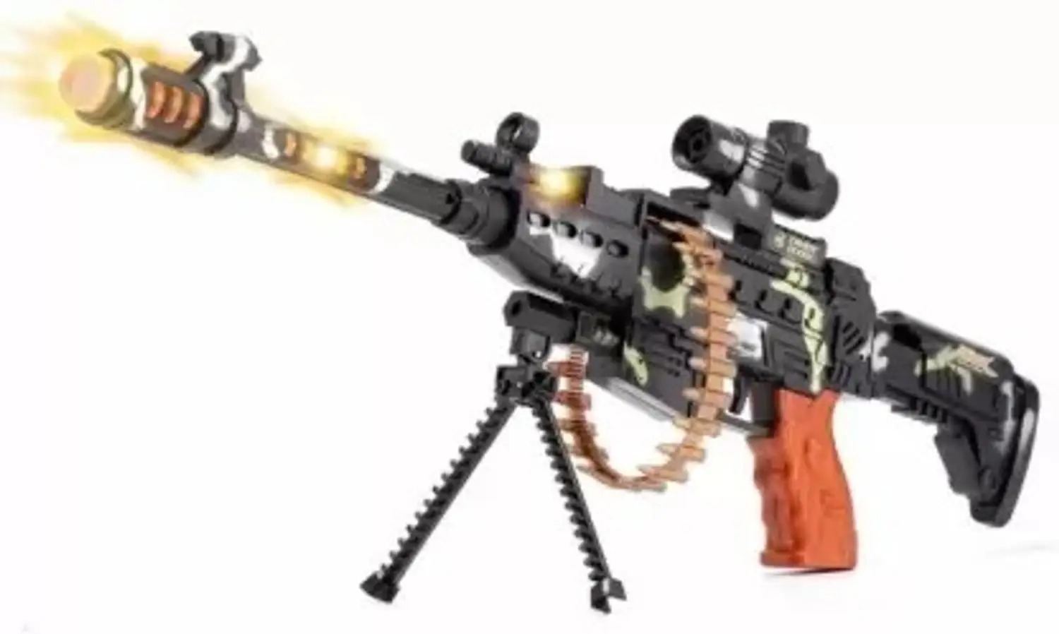 Realistic Design: Designed with cool camouflage patterns and detailed styling to give a lifelike feel. Includes a functional scope and a stand for added stability, making playtime more immersive and enjoyable.