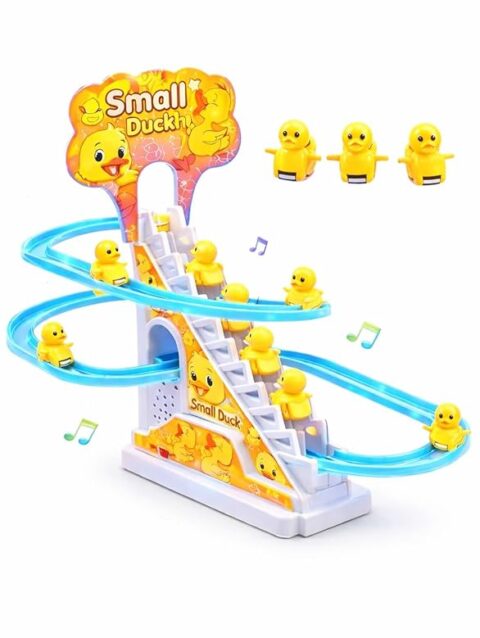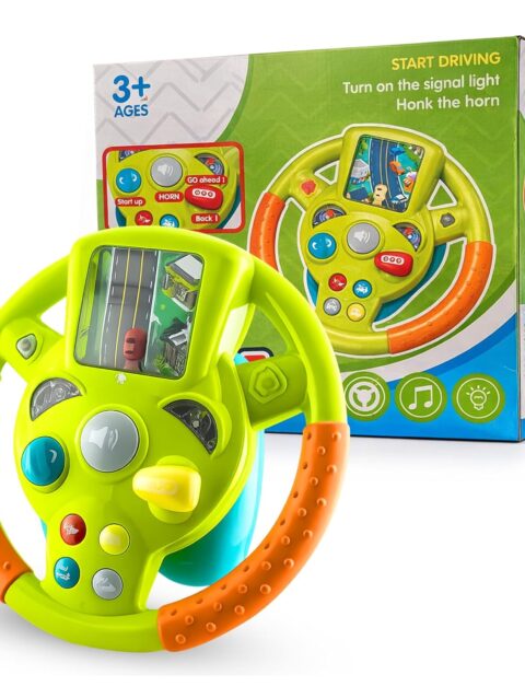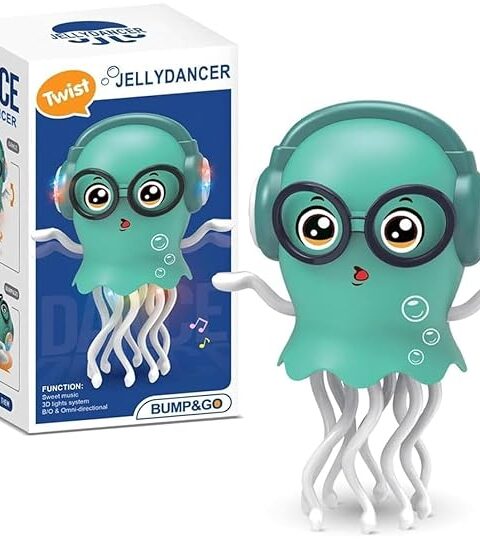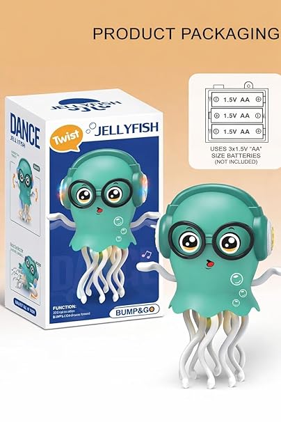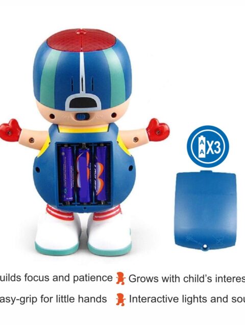 This tumbling monkey toy with a cute banana design stands out with its vibrant colours, playful look, and engaging combination of lights, sounds, and rolling movement that encourages babies to crawl and take their first steps. It features voice induction with a built-in sound controller and touch sensor, allowing it to respond instantly when clapped at, gently touched, or when it detects sound, and it goes into sleep mode when inactive. Once switched on, it plays cheerful music along with colourful lighting effects, creating an interactive and enjoyable playtime that also supports sensory development, rhythm recognition, and parent-child bonding. The monkey spins in a full 360° while holding a simulated banana, keeping children engaged and motivated to move. It operates on 3 AA batteries (not included).