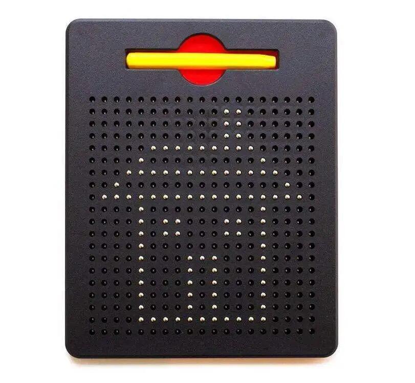 | The included pencil works great to bring the magnet balls to the surface. It is very sturdy and has survived multiple drops.|Nice for a preschooler, love playing with it because of the satisfying “click” noises and the fun of a novel toy.|Randomly doodles, practicing abcs and shapes, playing tic tac toe, or making more elaborate designs. Have fun with it!|Take it on long car rides, restaurant waiting for dinner, anywhere they need to be entertained. Much better for their brains than screen time! Each age uses it a bit differently which is neat to see. |