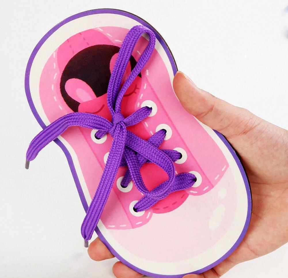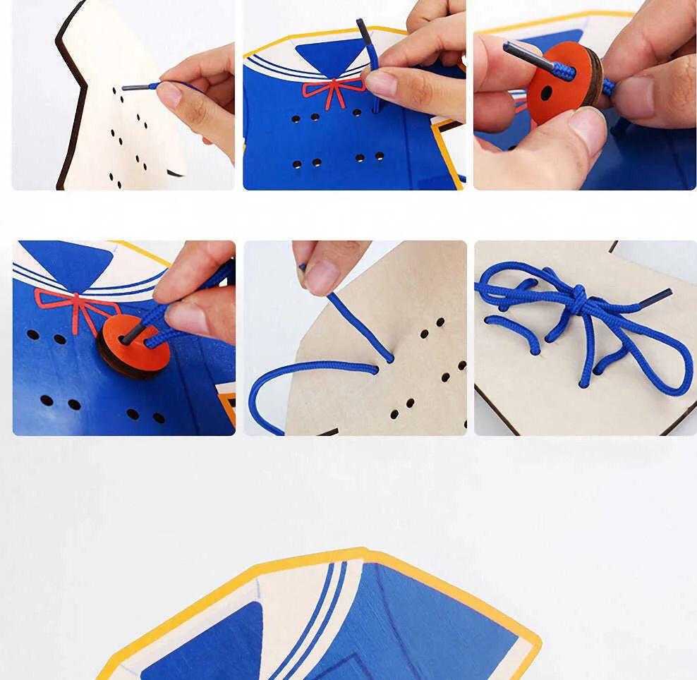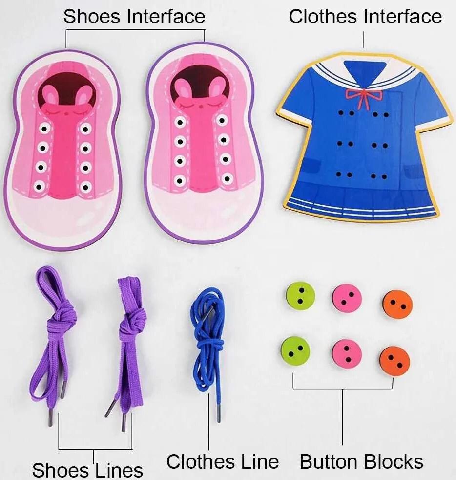Threading Toy Clothes Shoes Simulated Interactive Fun Wooden Handmade Fine Motor Skills Toy Lacing Game Developmental Activity