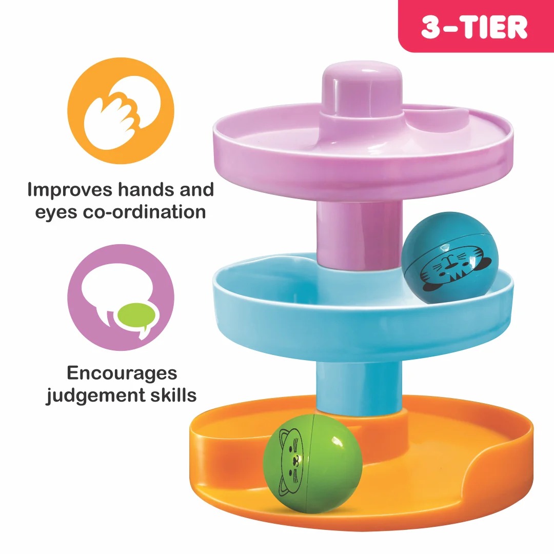 The colourful animal-themed stacking cups and smooth rolling ball action make playtime more exciting, helping toddlers stay interested while learning through movement and observation.