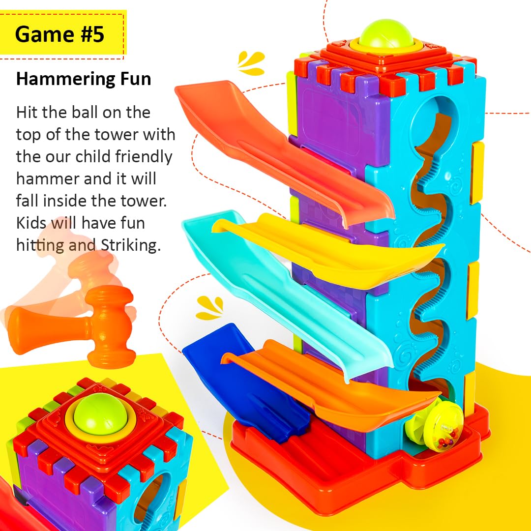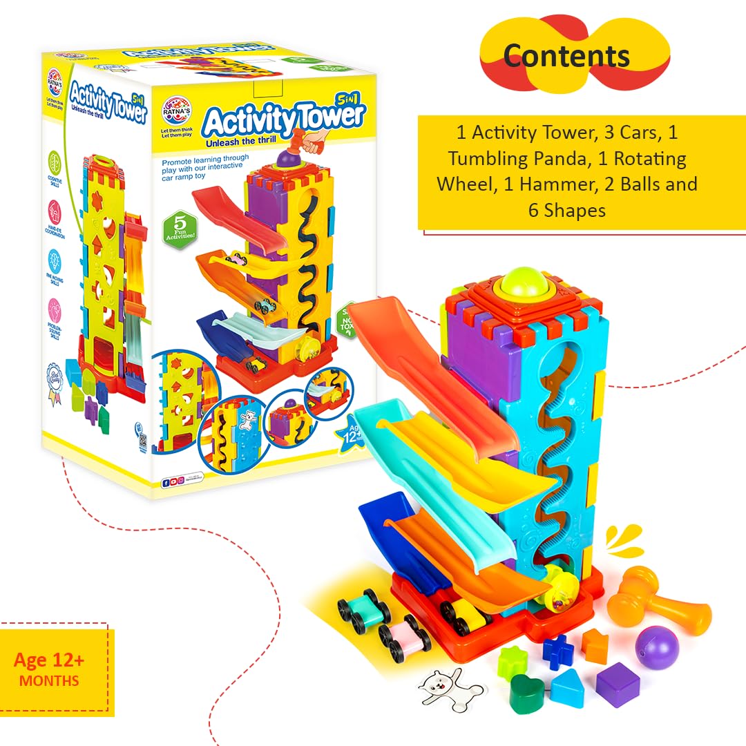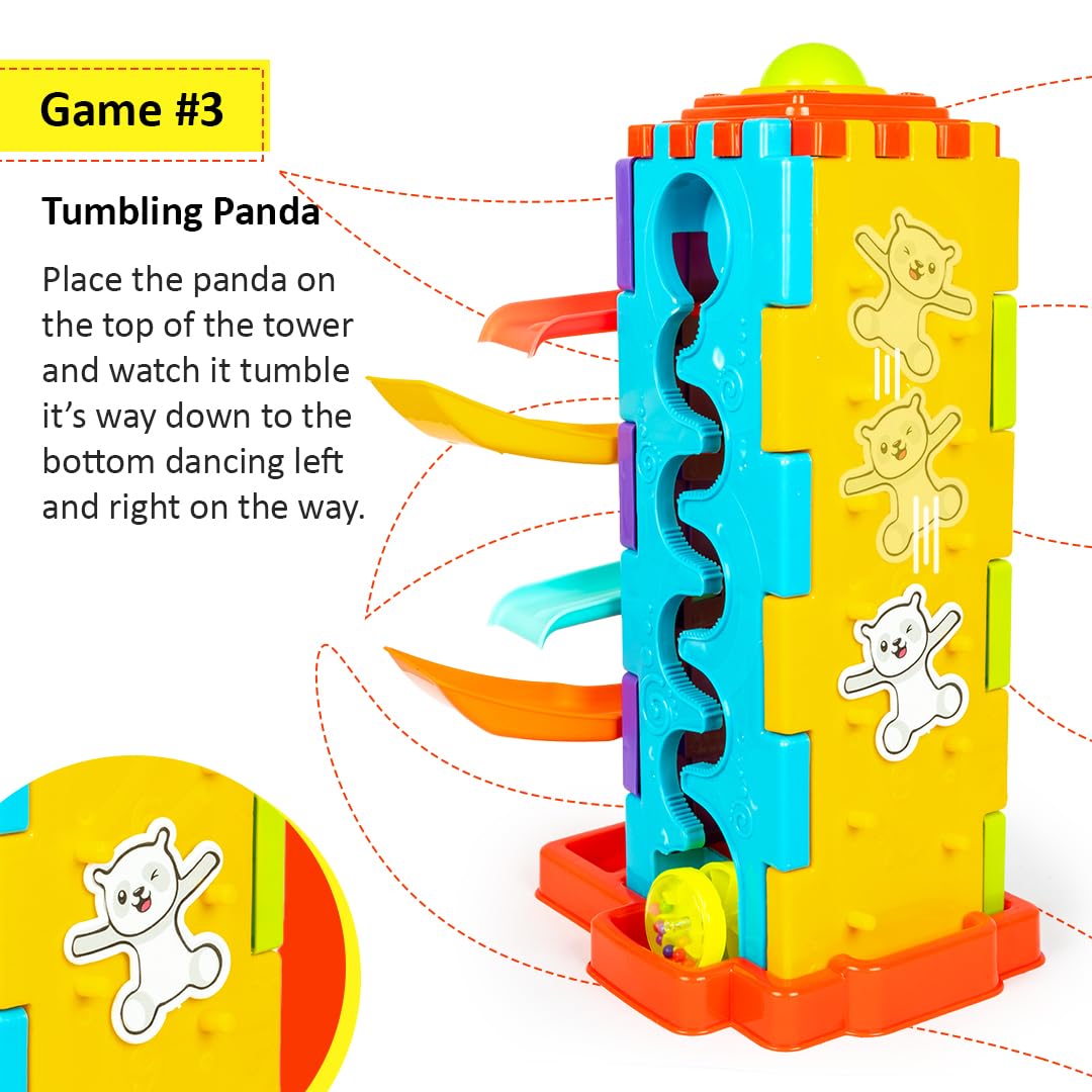 Toystor Activity Tower 5 in 1 for Kids 1+ Year with Car Race, Shape Sorter, Tumbling Panda, Wheel Slider and Hammering Fun Activities for Toddlers