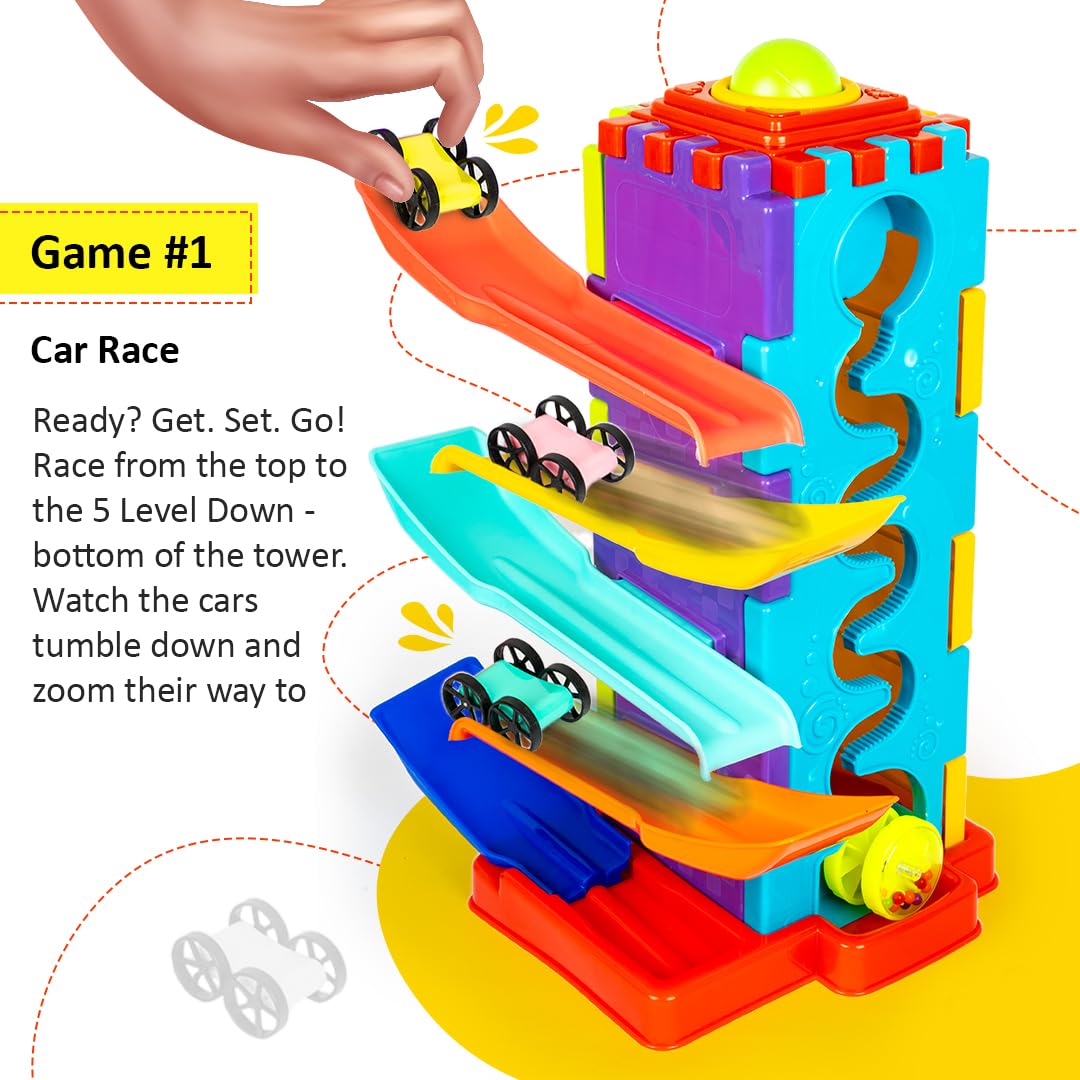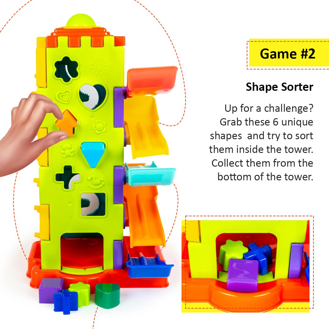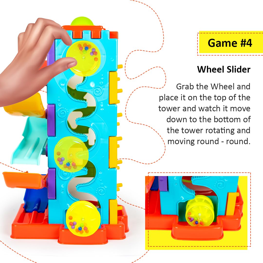 Toystor Activity Tower 5 in 1 for Kids 1+ Year with Car Race, Shape Sorter, Tumbling Panda, Wheel Slider and Hammering Fun Activities for Toddlers