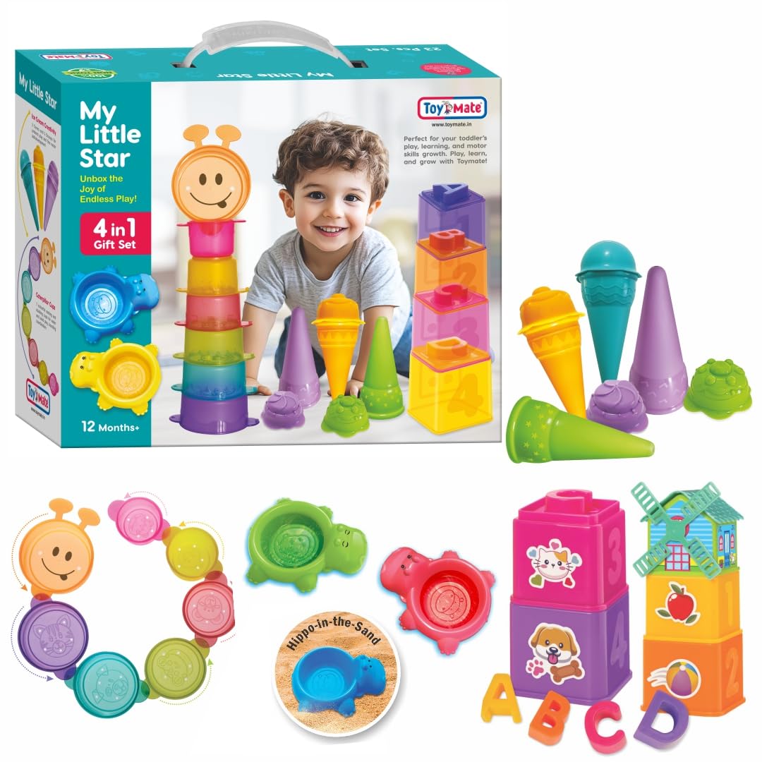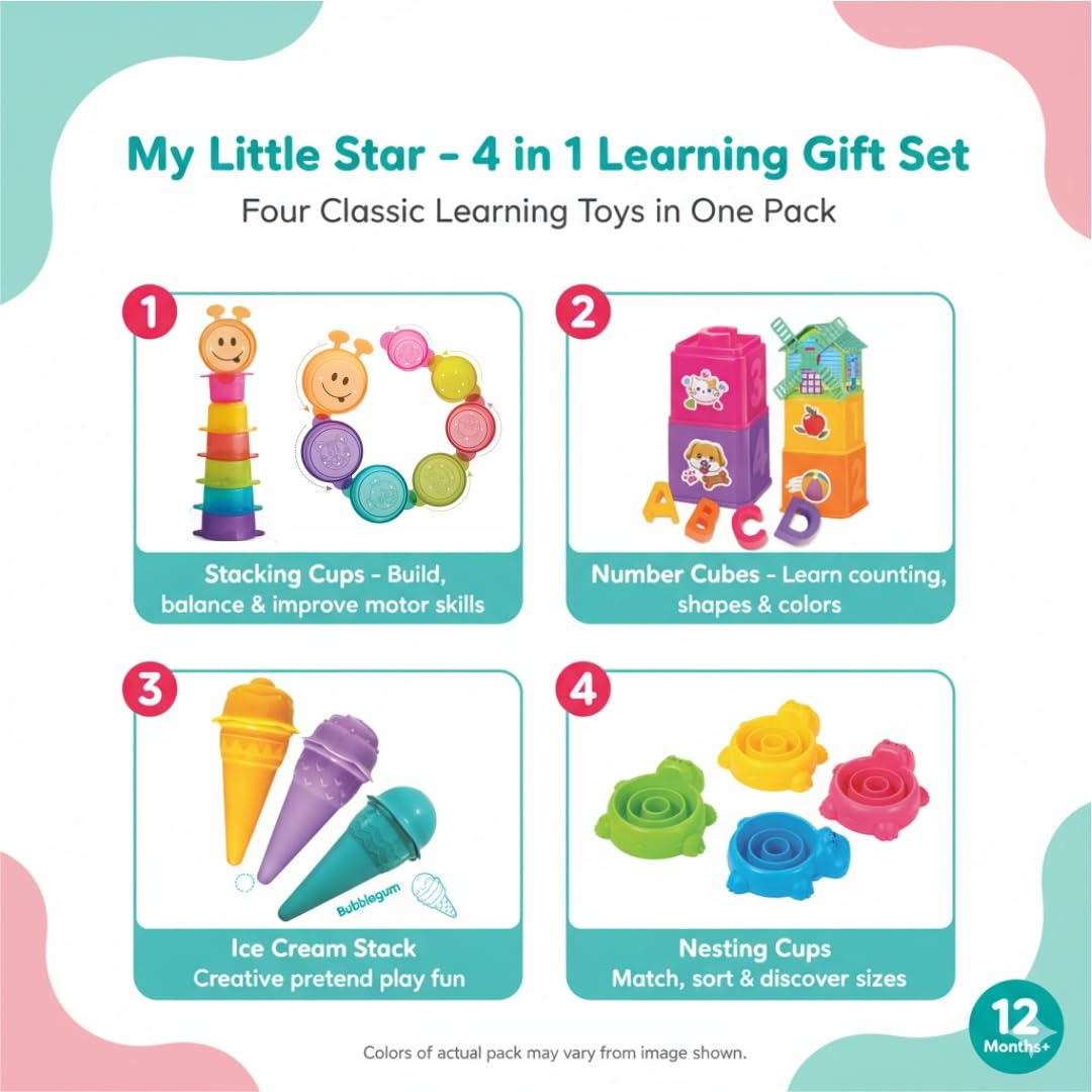 ToyStor My Little Star 4-in-1 Gift Set for Toddlers – Stacking Cups, Shape Sorter Blocks, Ice Cream Cones & Caterpillar Cups – Educational & Motor Skills Development Toy for Kids 12+ Months