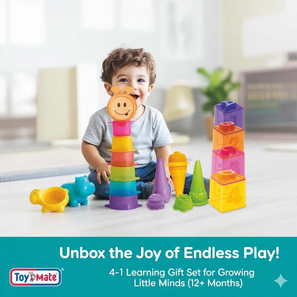 ToyStor My Little Star 4-in-1 Gift Set for Toddlers - Stacking Cups, Shape Sorter Blocks, Ice Cream Cones & Caterpillar Cups – Educational & Motor Skills Development Toy for Kids 12+ Months
